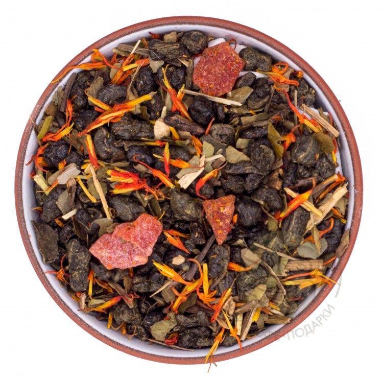 Ганпаудер, папайя, лист земляники, лепестки сафлора, ароматизатор